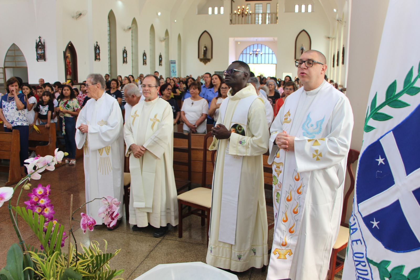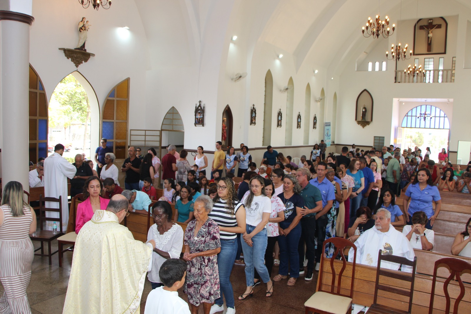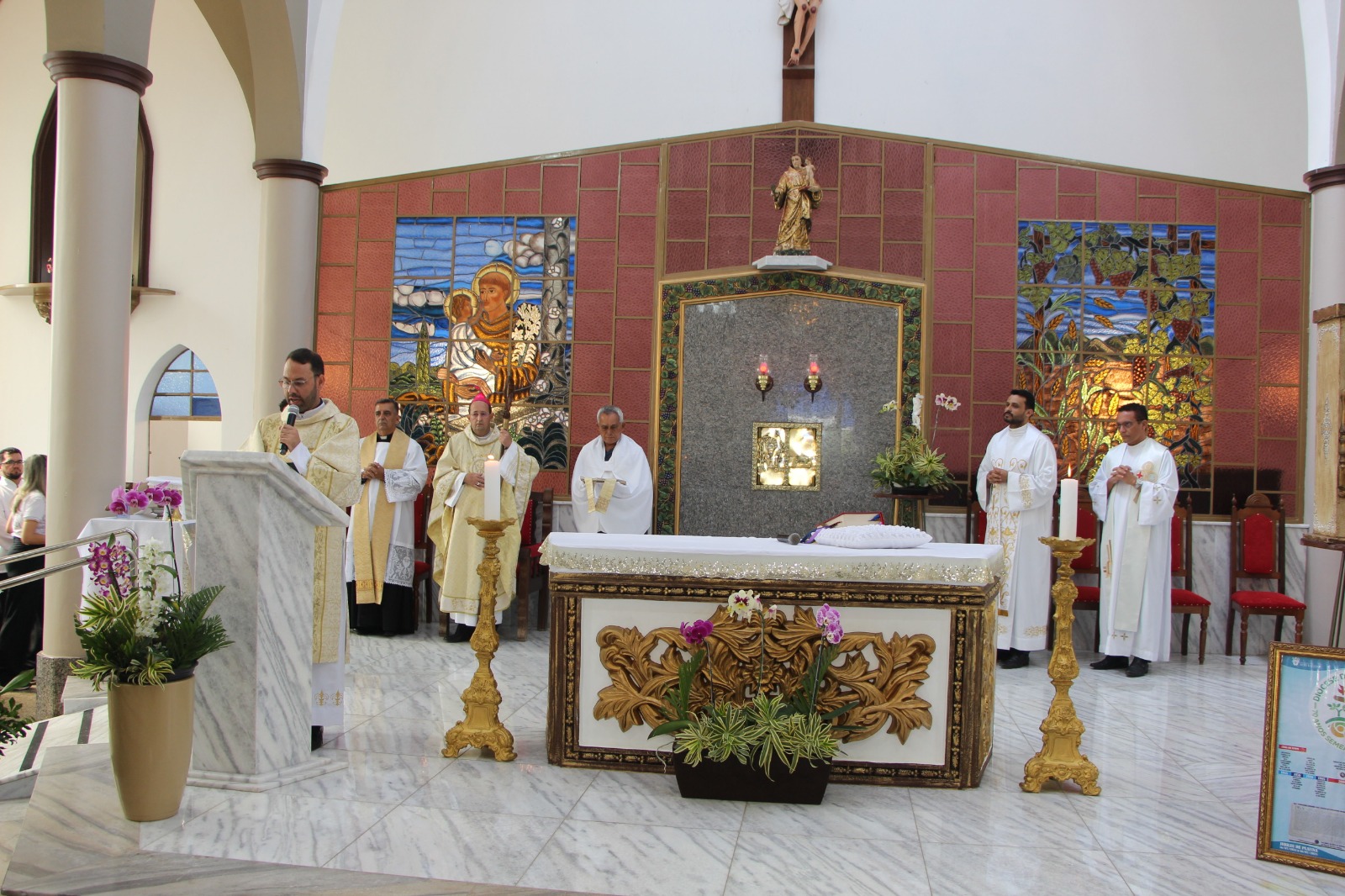 No dia 07/09 aconteceu a missa em ação de graças pelos 75 anos de nossa amada Paróquia de Santo Antônio, data da instalação em 1949. As palavras iluminadas pelo Espírito Santo, por todos os que falaram, tocaram fundo no coração e penetraram a nossa alma, alimentando-a, fortalecendo-a, nos encorajando a “honrar a história de nossa Paróquia, construída ao longo dos anos” como disse o nosso querido bispo Dom Francisco Cota!